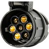 Cet adaptateur compact permet de connecter un système électrique à 13 plots mâle à un dispositif à 7 plots femelle, idéal pour vos besoins de remorquage ou d'éclairage. Compatible avec les véhicules 12V, il est parfait pour adapter vos équipements en toute simplicité.