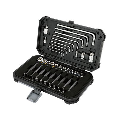 - 7 douilles carré de 3/8" avec empreinte Torx en chrome vanadium pour une meilleure résistance: T10, T11, T12, T14, T16, T18 et T20.