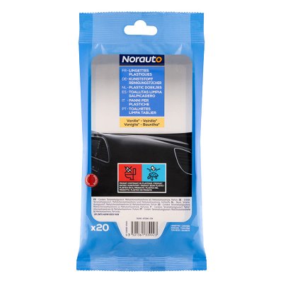 Paquet de 20 lingettes pour le nettoyage des plastiques. Elles sont pratiques et simple à utiliser. Vous pourrez les ranger dans la boîte à gants pour les utiliser à tout moment. Les lingettes NORAUTO sont antistatiques, permettant d'éviter que la poussière ne retombe trop rapidement sur la zone nettoyée. Egalement, profitez de la finition satinée sans avoir de film gras sur vos plastiques.