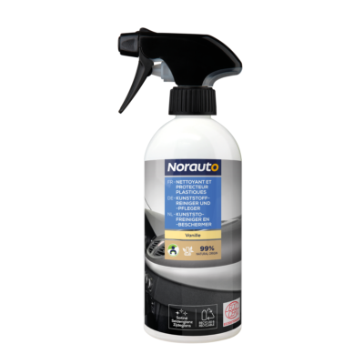 Pour une application optimale : secouez le flacon avant utilisation, vaporisez sur la microfibre pour plastiques NORAUTO et étalez sur la surface à nettoyer.
