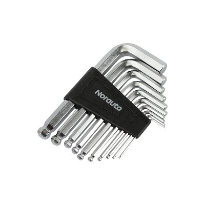 Ce jeu de 10 clés Allen à tête sphérique NORAUTO permet de visser ou dévisser dans les endroits difficilement accessibles. Sur le côté coudé de la clé, les têtes sont standards. De l'autre côté de la clé, les têtes sont sphériques permettant de visser ou dévisser avec un certain angle ce qui facilite fortement l'accessibilité.