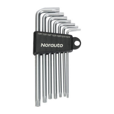 Ce jeu de 7 clés Torx 5 pointes NORAUTO permet le serrage ou le desserrage dans les zones difficilement accessibles.Elles sont coudées à 90° et sont forgées à partir d'acier en chrome vanadium pour une excellente résistance à la corrosion ainsi qu'une très bonne résistance à l'usure.Ce kit est composé de 7 clés Torx 5 pointes : T10, T15, T20, T25, T27, T30 et T40 et est garanti à vie.