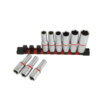 Ce jeu de 9 douilles 6 pans NORAUTO est utilisable avec un cliquet de carré de 1/2''. Les douilles permettent le serrage ou le déblocage d’écrous.