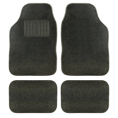 Jeu complet de 4 tapis universels 65 x 44 cm pour l’avant + deux tapis de 45 x 30 cm pour l’arrière 100 % polyéthylène noir 300 gr/m2 et composé au minimum avec 50% de fibres recyclées. Les tapis sont dotés d'un renfort thermosoudé pour les talons pour plus de confort.